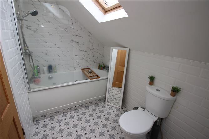 Tiled throughout, bath with overhead shower, W.C, W.H.B, velux window.